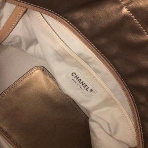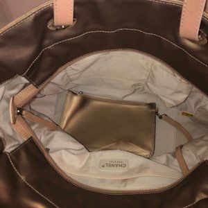 Nearly perfect condition Chanel Tote. Comes with dust bag. Metallic Gold strap and interior clean.