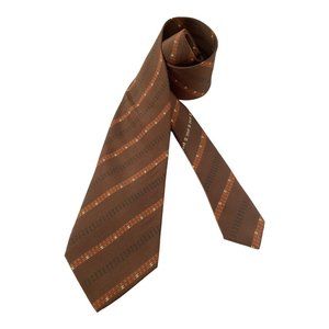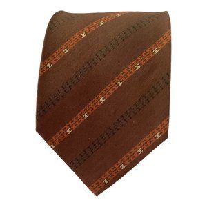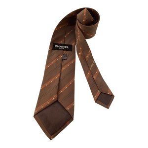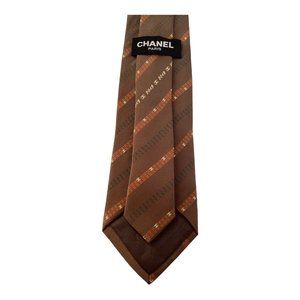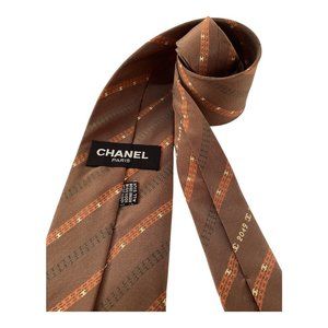 CHANEL PARIS Brown Striped Monogrammed Silk Tie Made In Italy 56"-3" EX COND