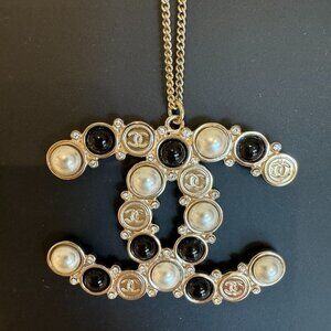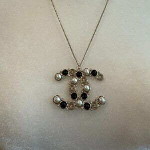 💯AUTH. NIB. ABSOLUTELY BEAUTIFUL NECKLACE. GOLD IN COLOR. CC 2" WIDE. GOLD WITH PEARL/BLACK AND CRYSTAL STONES. CLAW CLASP. TWO LENTHS. LONG 11.5" TO CHARM AND SHORTER 8" TO CHARM.
