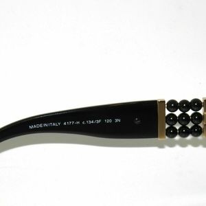 Comes with Chanel hard box, Chanel drawstring soft case, Chanel cleaning cloth, Chanel booklet. Sunglasses are authentic Chanel and brand new. GREAT VALUE! BEAUTIFUL SHIELD STYLE SUNGLASSES IN BLACK AND GOLD FROM CHANEL'S PERLE COLLECTION. SEE ALL OF THE PICTURES FOR MORE DETAIL!
