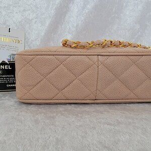 Introducing the rare & beautiful Vintage early-90s Chanel Camera Bag in a stunning pink Caviar leather - a true collector's item for any fashion lover. Crafted with the utmost care & attention to detail, this bag features diamond quilting with the iconic interlocking 'CC' logo embroidery, & is finished with 24K gold plating on the hardware for an added touch of glamour. This bag is an AUTHENTIC vintage Chanel piece, complete with a matching authentication card to give you peace of mind. And the best part? It is in excellent condition, with no visible signs of wear, creasing or stitching issues. The gold plating is also free of scratches, ensuring that this bag will last for many years to come. The bag also comes with a chain-link and leather crossbody strap, making it perfect for everyday use. The top zip closure & interior zip pocket provide added convenience & security for your items. Measuring at 8" in length, 5" in height, and 2.5" in depth, with a strap drop of 20", this bag is the perfect size for your daily essentials while also making a statement with its stunning pink hue. This vintage Chanel Camera Bag was made in Italy between 1991-1994, making it a true piece of fashion history. Don't miss your chance to own this rare & beautiful item. Add it to your collection or surprise someone special with a truly unique and timeless gift. We are here to answer any questions you have about this bag. Make an offer today and let us help you own a piece of fashion history.