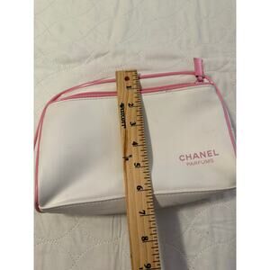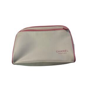 CHANEL Parfums Cosmetic Makeup Bag White with Pink Trim Travel Pouch