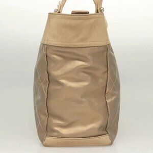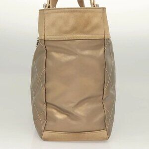 CHANEL Paris Biarritz MM Tote Bag Coated Canvas Beige Silver CC Auth