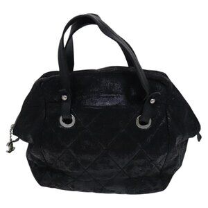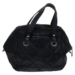 CHANEL Paris Biarritz PM Hand Bag Coated Canvas Black CC Auth