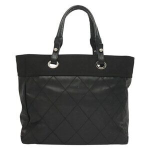 CHANEL Paris Biarritz Tote Bag Leather Black Silver CC Auth PP911