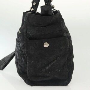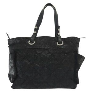 CHANEL Paris Via Ritz Tote GM Tote Bag Coated Canvas Black Silver CC Auth hk2935