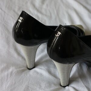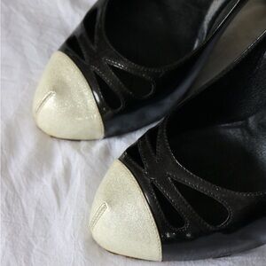 CHANEL | Patent Leather Black and Cream Sparkly Women's Pumps 2001