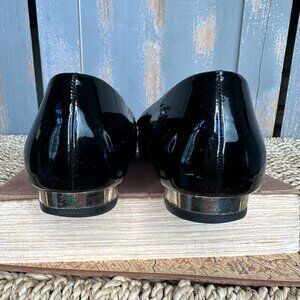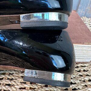 Black Patent Leather upper with Silver metal trim at toes and heels