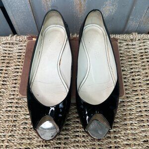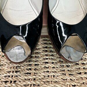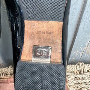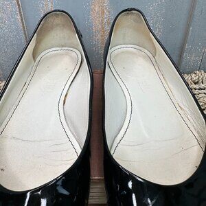CHANEL Patent Leather Peep Toe Ballet Flats Black Sz IT 36 1/2, US 6 1/2