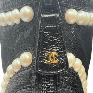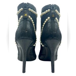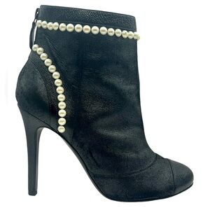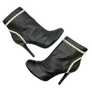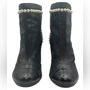 CHANEL Pearl Ankle Boots Black Leather EU 38 US 8