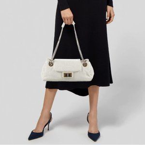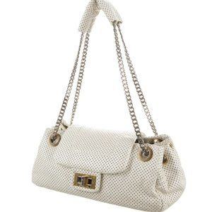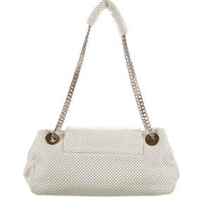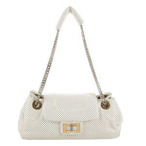 CHANEL Perforated Drill Accordion Flap Bag White Gold Silver Shoulder Purse