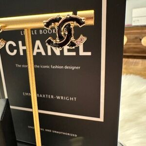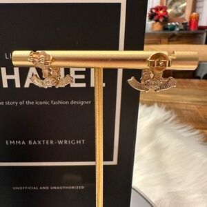 Pierced Chanel earrings! These stunning CC earrings are gold plated and feature a unique black enamel with two crystals on each. Each earring still has its Chanel plaque on the the back. Very good condition. Comes complete with box.