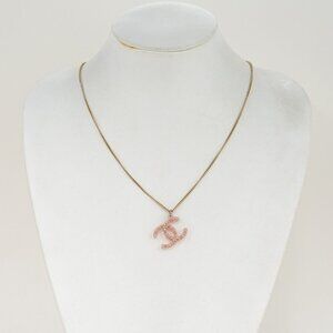 CHANEL Pink CC Logo Rhinestone Necklace 23" Gold Tone 04A Auth w/Box #2401