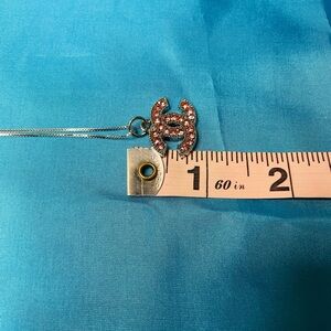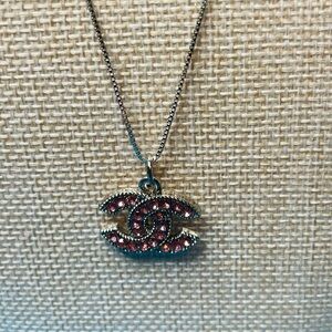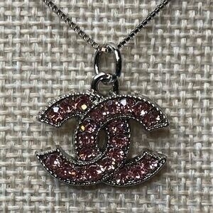 Elegant CHANEL necklace with pink crystals. Iconic logo design. Perfect for any occasion. Made from up-cycled zipper pull . Beautiful piece 💕wore only 3 times . In same condition