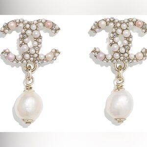 Gorgeous Chanel CC logo drop earrings with faux pearls and crystals