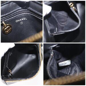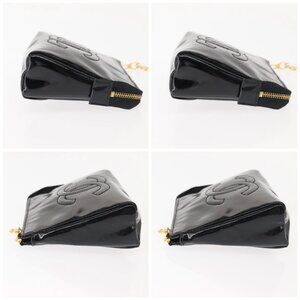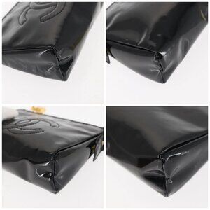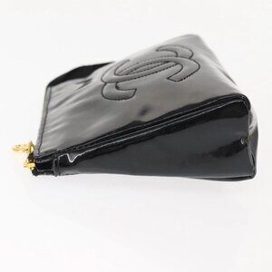 CHANEL Pouch Enamel Black Gold CC Auth 145547