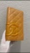 Elegant CHANEL wallet with quilted design. Features iconic logo in camel hue.