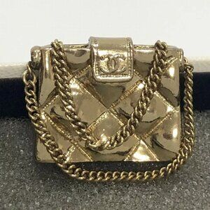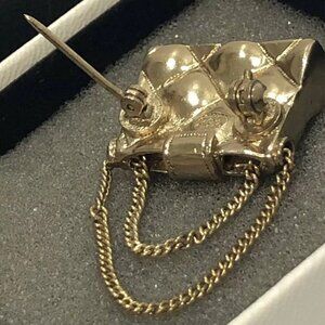 CHANEL Quilted Matelasse Bag Motif Brooch Gold Tone Pin 02P Auth w/Box D-q114