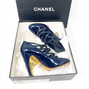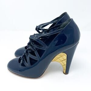 CHANEL Quilted Patent Leather Strappy Heels Navy EU 38