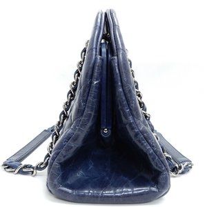 This beautiful bag is in wonderful condition! Blue leather coating with the Chanel chains! One of a kind! I love this color and is is bold at the same time subtle! Making a statement walking around with this!