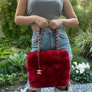 CHANEL RARE Rabbit Fur Logo CC Charm Small Tote