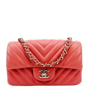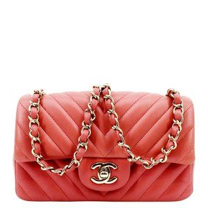 CHANEL Rectangular Flap Mini Quilted Chevron Leather Shoulder Bag Red