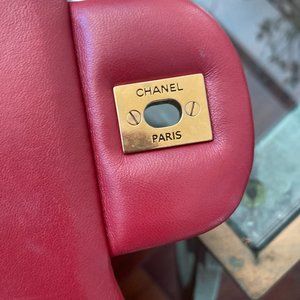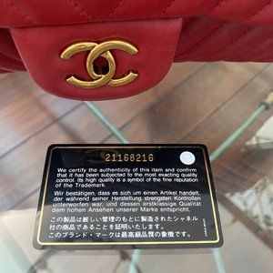 CHANEL Red Jumbo Chevron Classic Flap Handbag Shoulder Bag