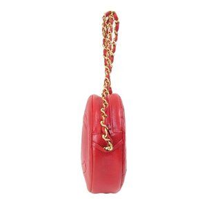 CHANEL Red Lambskin Leather Coco Mark Shoulder Bag