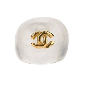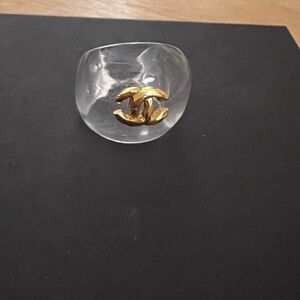 CHANEL Resin Acrylic Clear Dome CC Ring Gold CC Coco Chanel Vintagr RARE and hard to find!