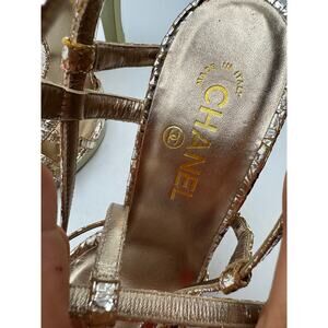 CHANEL Rose Gold Metallic T-Strap Platform Sandals Size 38.5