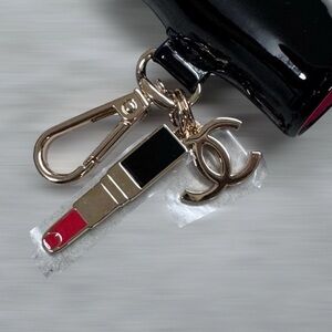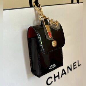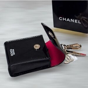 Sleek and luxurious CHANEL key holder. Glossy black finish with gold accents. Perfect for organizing essentials.