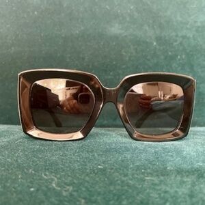Colors: Frame is black & muted gold; lenses are gray gradient