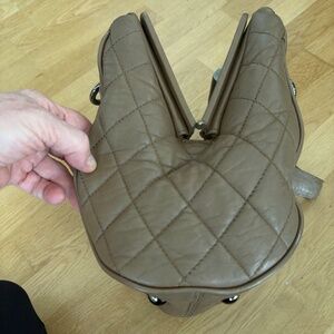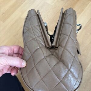 CHANEL Shoulder Bag, Tan/Taupe, Quilted Sides, Silver Chain
