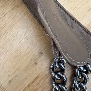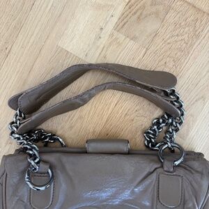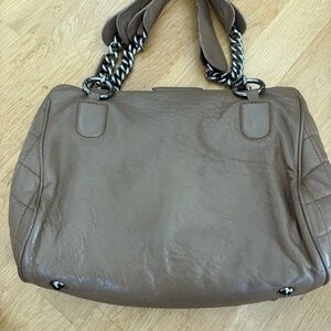 CHANEL Shoulder Bag, Tan/Taupe, Quilted Sides, Silver Chunky Chain