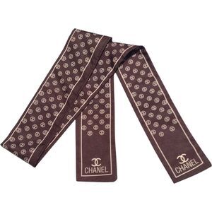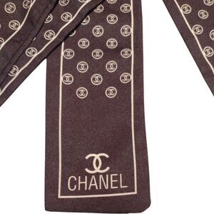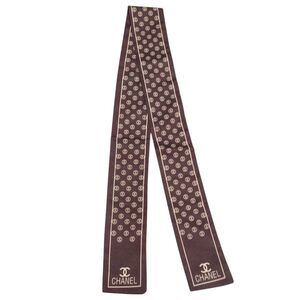 CHANEL Silk Bandeau Hair Neck Bag Twill Scarf Slim Tie Brown CC Logo Authentic