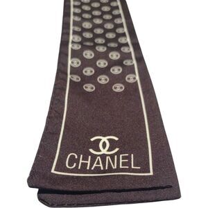 Classy CHANEL Silk Bandeau Hair Neck Bag Twill Scarf Slim Tie Dark Brown CC Logo Authentic, No Tags, 2.5" X 38"
