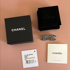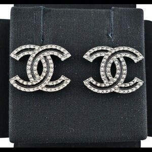 These exquisite CHANEL earrings showcase the iconic interlocking C logo in a stunning ruthenium finish, adorned with shimmering stones for a touch of elegance. The stud-style design makes them a versatile accessory, perfect for elevating any ensemble with a hint of luxury. Comes with box, case, and sales tag. From the 21S collection. Please review all pictures and ask all questions prior to purchase. NO TRADES 🚫 Thank you!