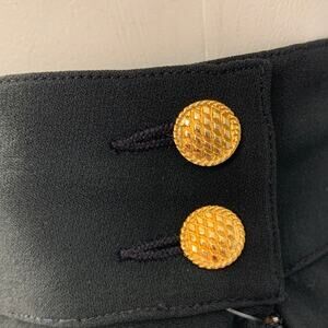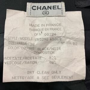 CHANEL skirt in a black acetate blend fabric featuring a pleated style, below knee length, Chanel gold tone buttons, and a side zip closure. Made in France.