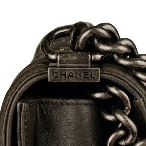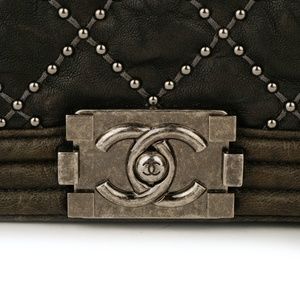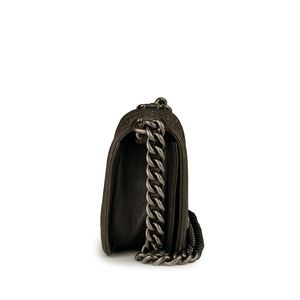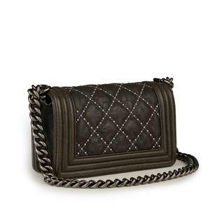 CHANEL Small Boy Bag Quilted Studded Gray Crumpled