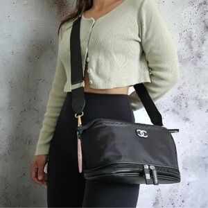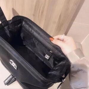 CHANEL Sparkling Black Cosmetic Makeup Pouch Clutch Bag