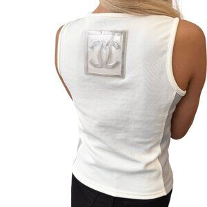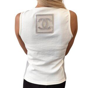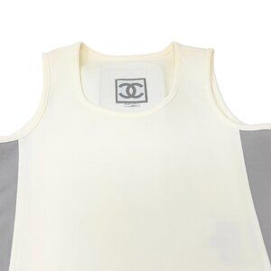 CHANEL Sport Vintage 01P CC Big Logo Tank Top #38 White Gray Nylon [105654]