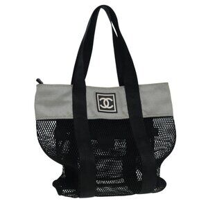 CHANEL Sports Tote Bag Nylon Black Gray CC Auth