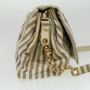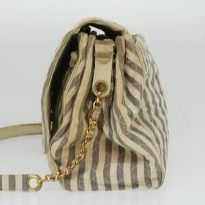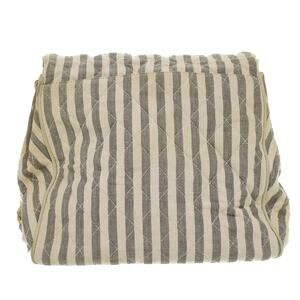 CHANEL Striped Matelasse Chain Shoulder Bag Canvas White Gray CC