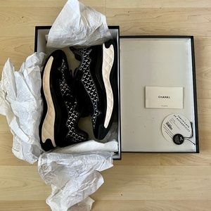 CHANEL Suede Calfskin Embroidered CC Sneakers (size EU 39) **NIB**