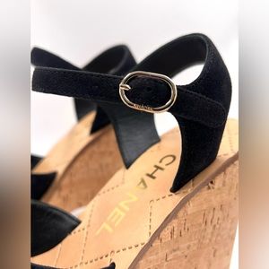 CHANEL Suede Kidskin Wedge Sandals in Black