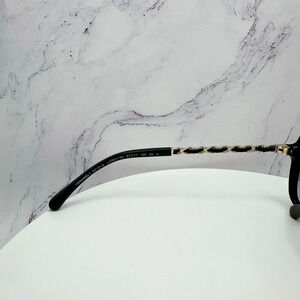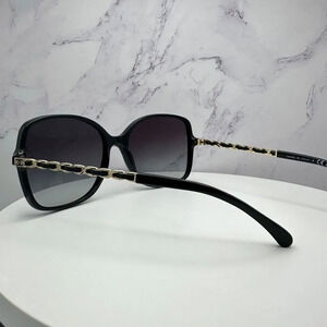 CHANEL Sunglasses Black Gold Chain Arms Interlocking CC Logo Acetate Square New