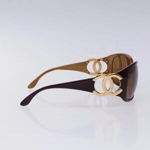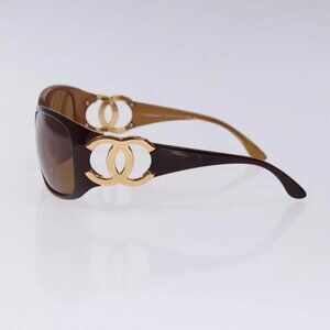CHANEL Sunglasses Plastic Brown Gold CC Auth yk18746