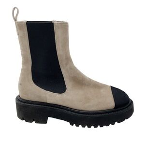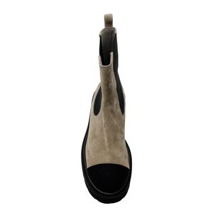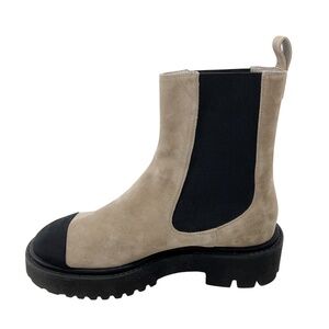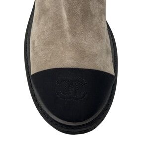 Chanel Taupe / Black CC Grosgrain Cap Toe Suede Chelsea Boots