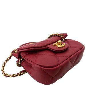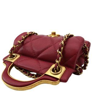 CHANEL Top Handle Flap Card Holder Quilted Leather Chain Shoulder Bag Red