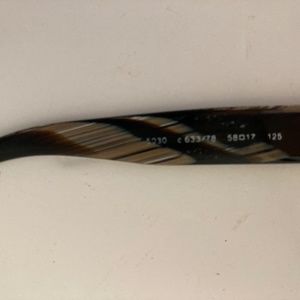 These sunglasses were purchased at Neiman Marcus about 20 years ago, and are in excellent, pre-owned condition, and were only worn twice! The policing cloth discolored the case underneath it, so I have placed it in plastic to prevent further discoloration. The right arm is just a bit looser than the left, but I'm sure it can easily be tightened.